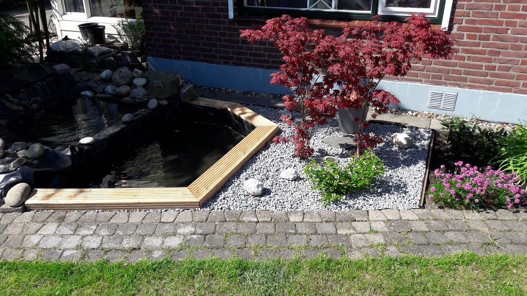 Er mag ook een klein beetje Japanse stijl worden toegepast met iets van een Pagode en grind of split.