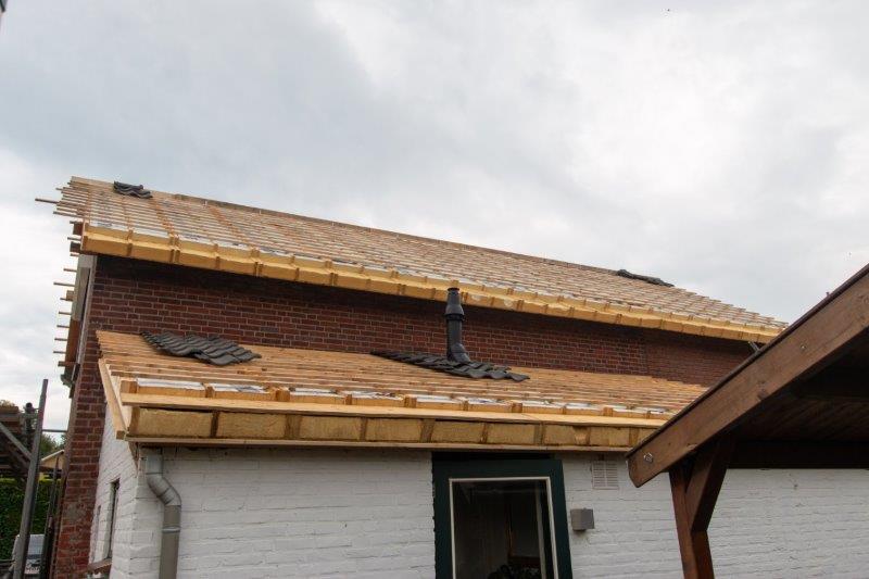 12 juli: Rest van de dakpan latten en nok is voorbereid vandaag!
