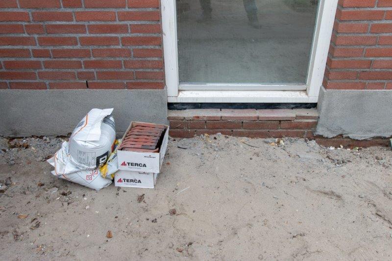 op Vrijdag is de metselaar nog even gekomen (terwijl hij vakantie heeft) om de laatste raam dorpel er op te zetten.