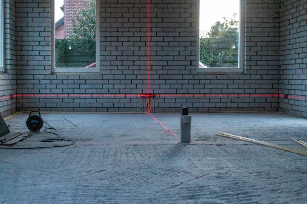 Voor nu gaan we beginnen met het voorbereiden van de stroom en de vloer want de vloerverwarming komt pas op 21 september door volle agenda’s bouwvak en het uitlopen van het project.