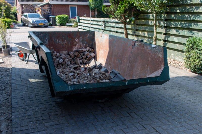 Woensdag 24-8: Container geplaatst voor puin, de schoorsteen boven gaat er in en wat we nog tegenkomen!